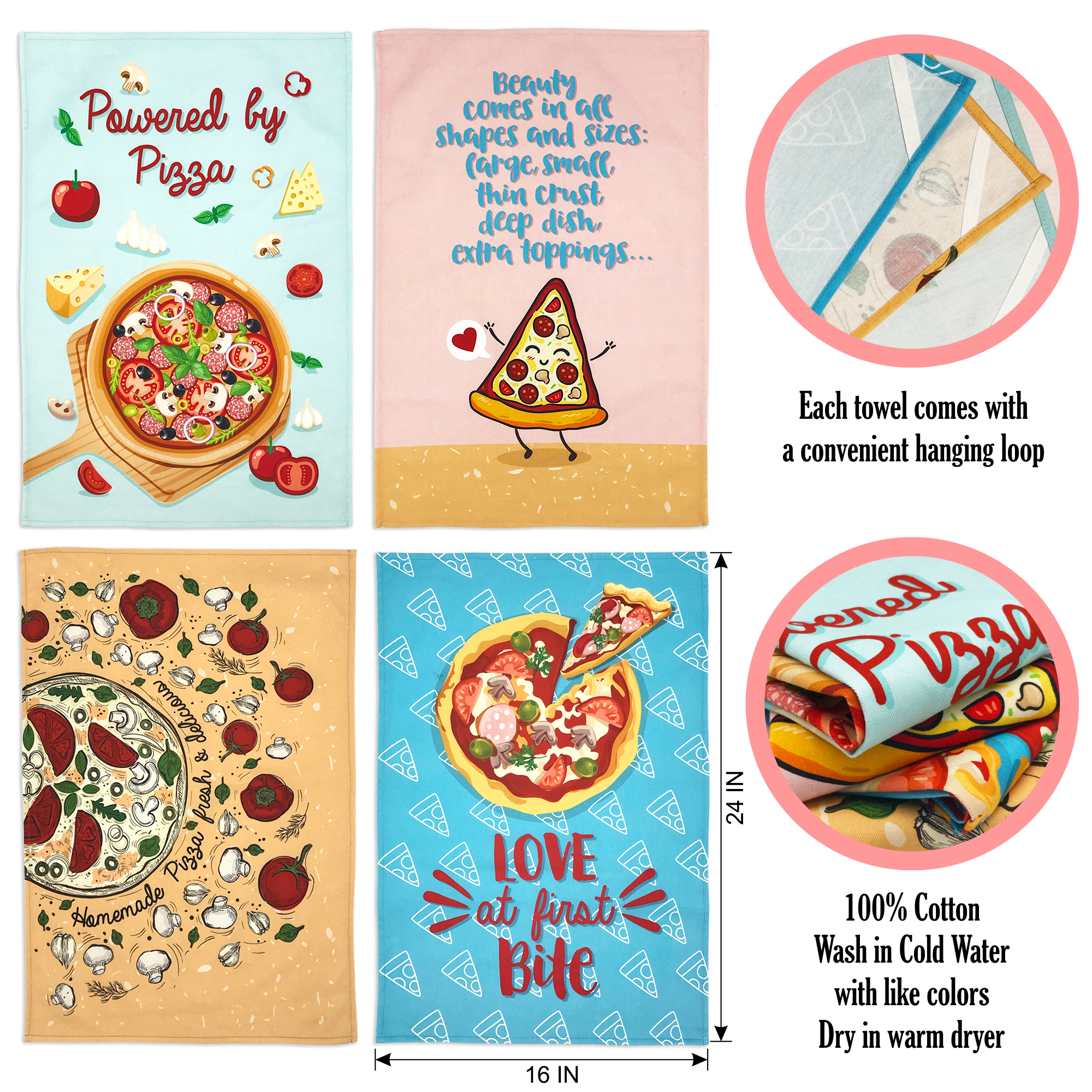 - Each kitchen towel measures 24 inch long and 15 inch wide and is machine washable.Graphics are uniquely designed and carefully printed with great clarity using the state-of-the-art technique that maintains the softness of the fabric and provides a long lasting life.