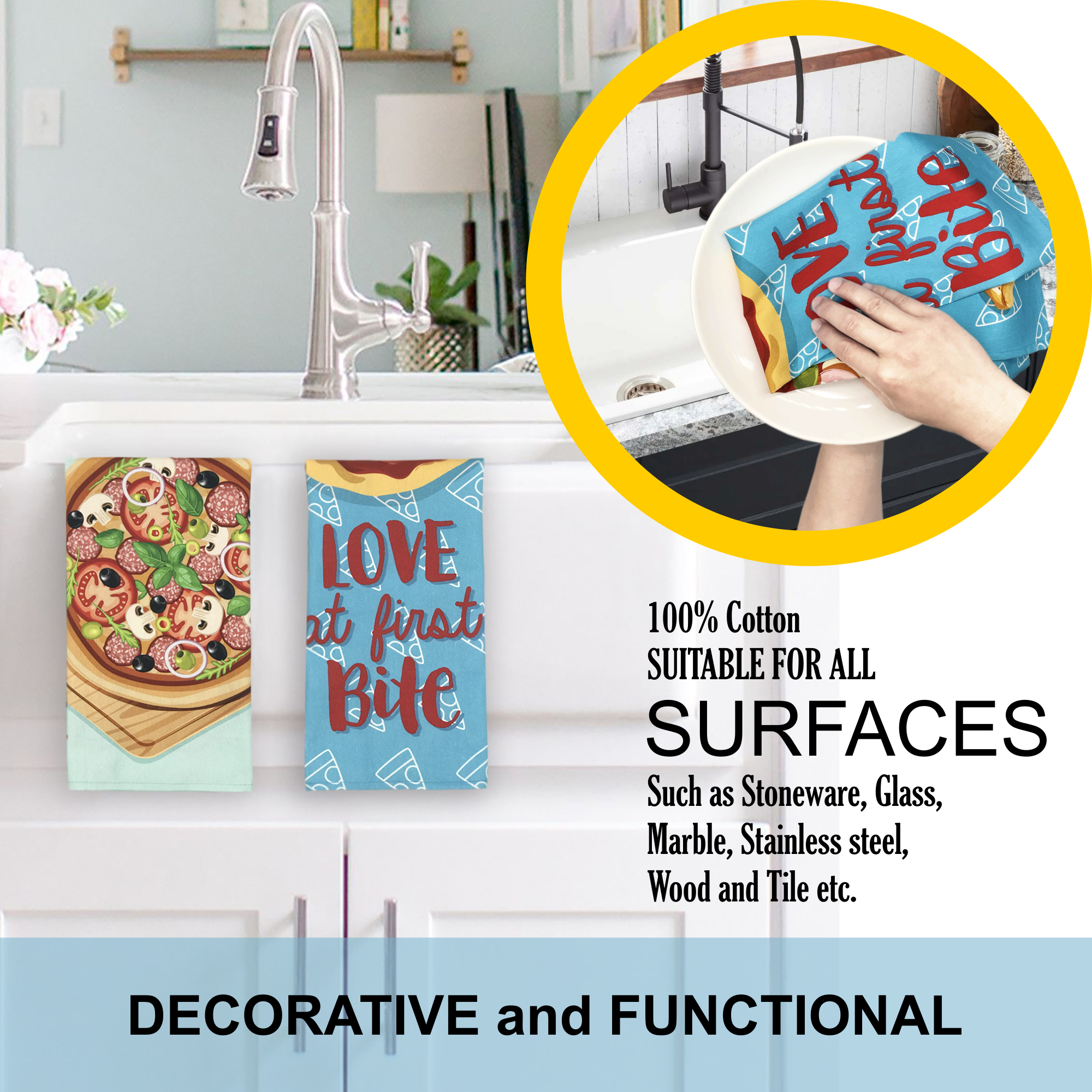 - Our kitchen towels are made of high quality microfiber fabric, whether you are looking for something to bring a cheerful spirit to your newly decorated kitchen and thinking about a unique gift idea for a housewarming party.